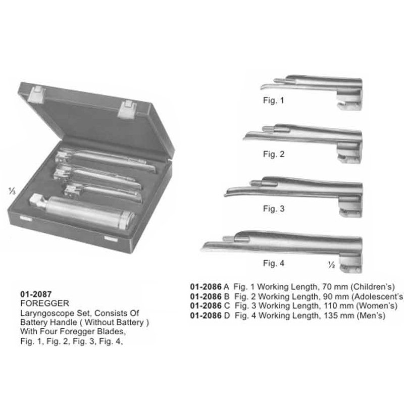 FOREGGER Laryngoscope Set With 4 Foregger Blades