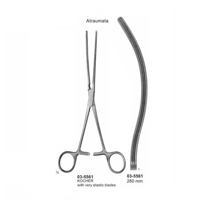 Kocher Intestinal Curved Clamp Atraumata Soft Elastic 280 mm